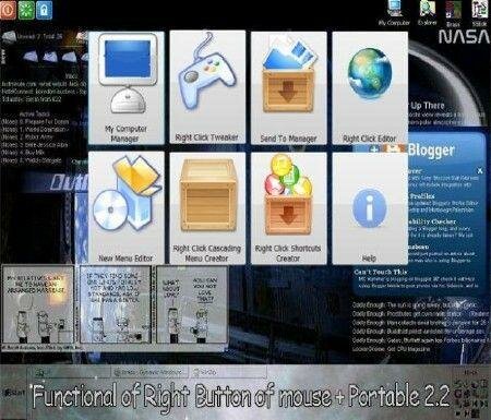 Functional of Right Button of mouse - программа для расширения возможностей вашего компьютерного меню, вы сможете нажатием правой кнопки мыши управлять почти всеми элементами операционной системы. Также есть возможность настройки меню так как вам угодно для полного удобства, теперь с помощью этой замечательной утилиты вы сможете добавить несколько хороших панелей для вашего контекстного меню правой кнопки мыши.